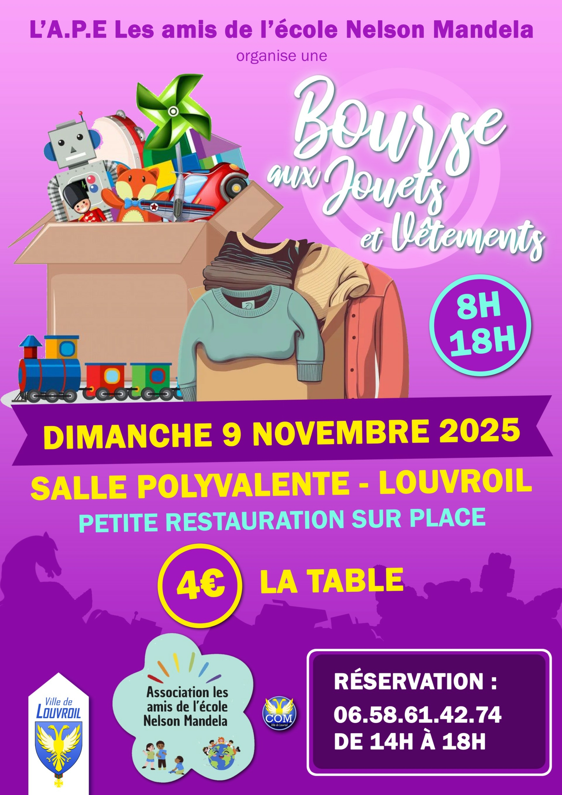 09nov8 h 00 min18 h 00 minbourse aux jouets et vêtementsAPE Nelson Mandela